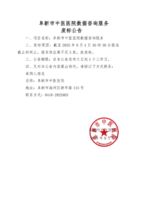 阜新市中医医院数据咨询服务废标公告
